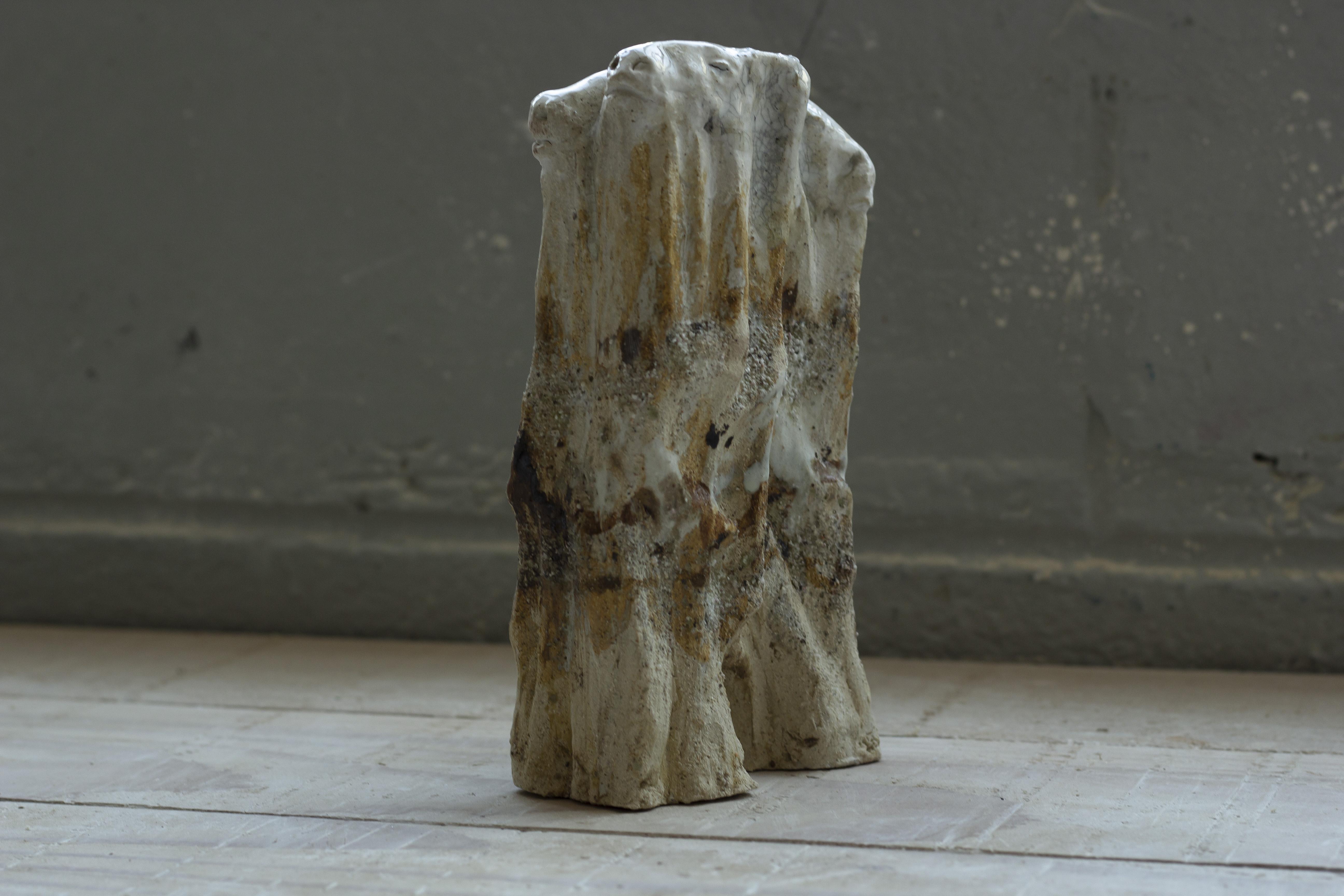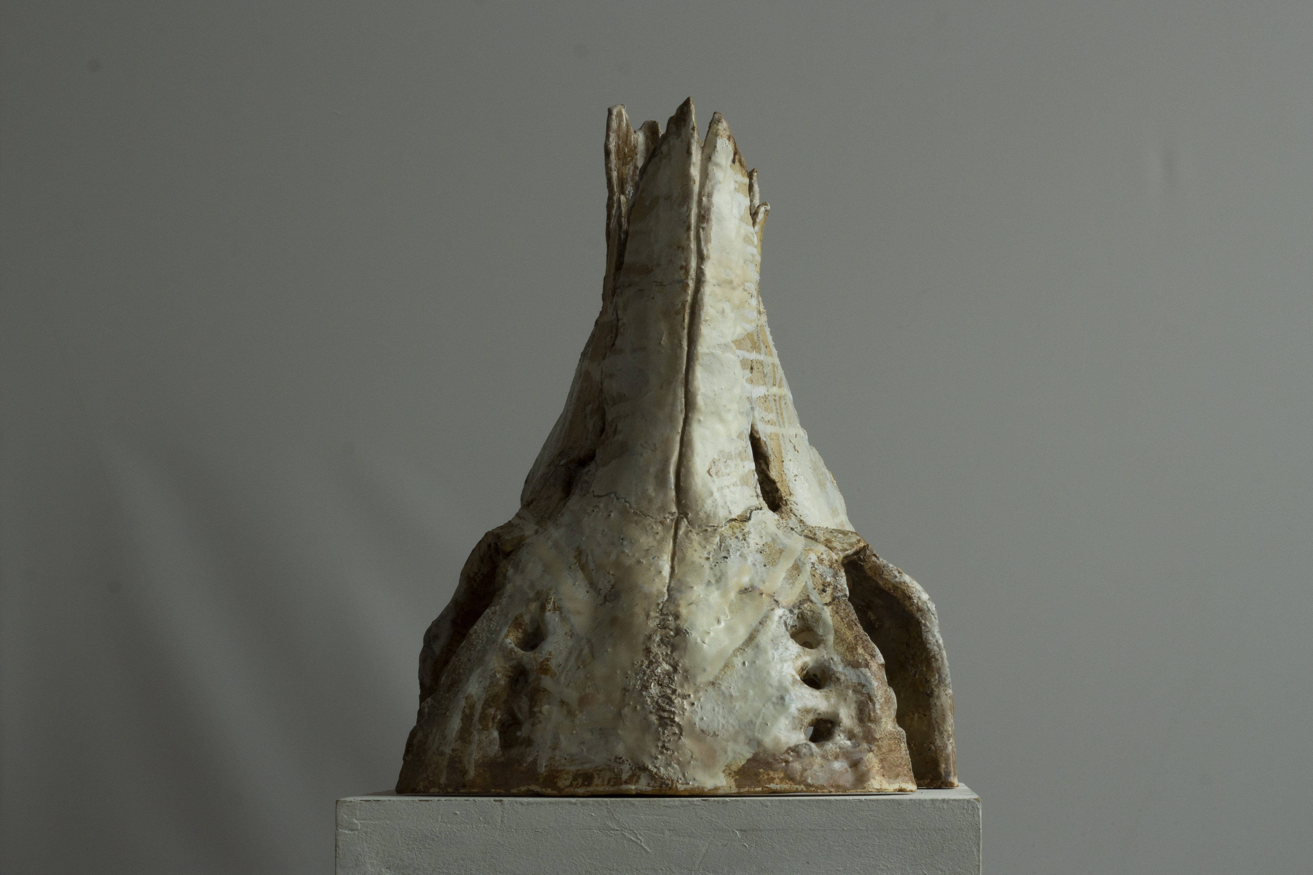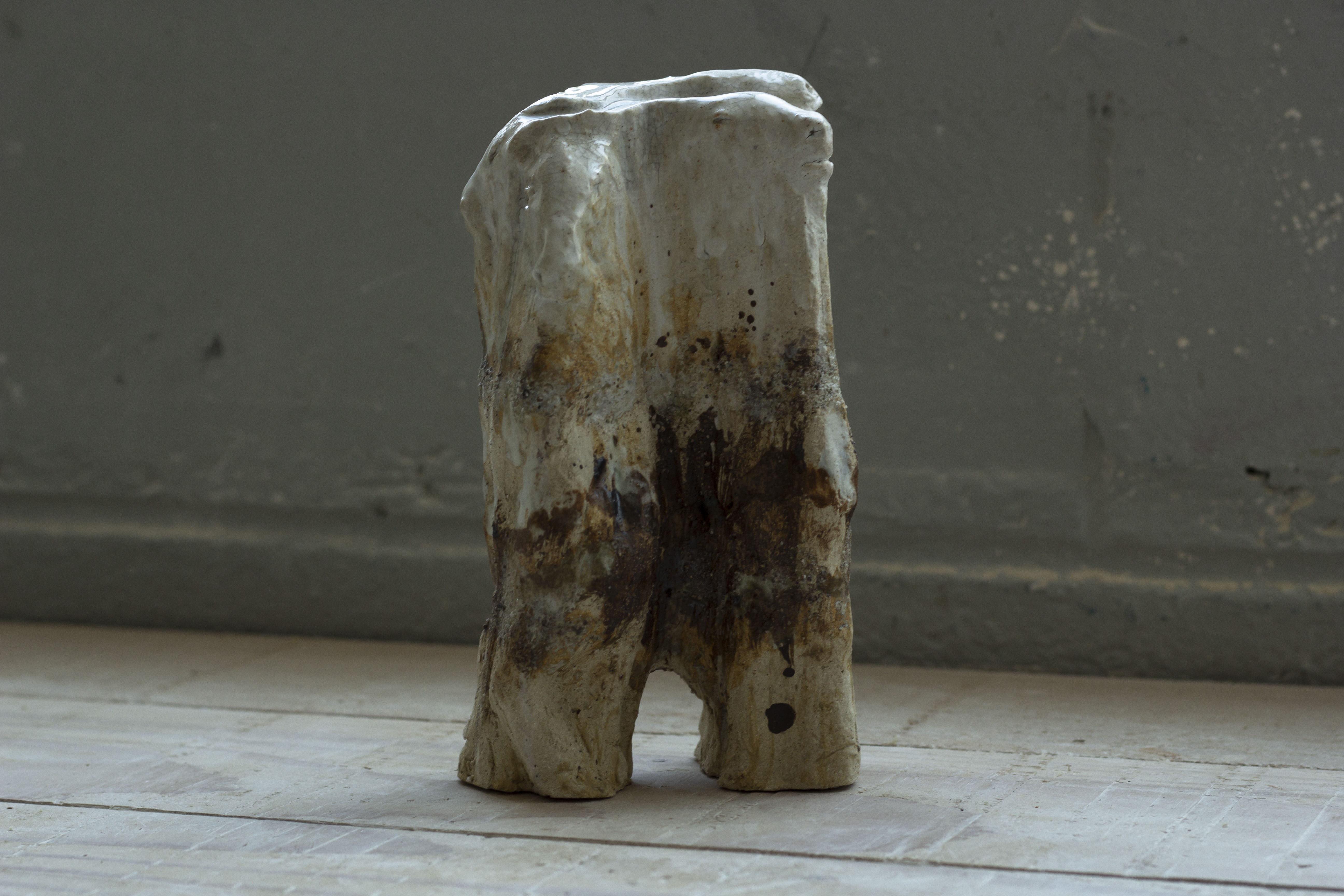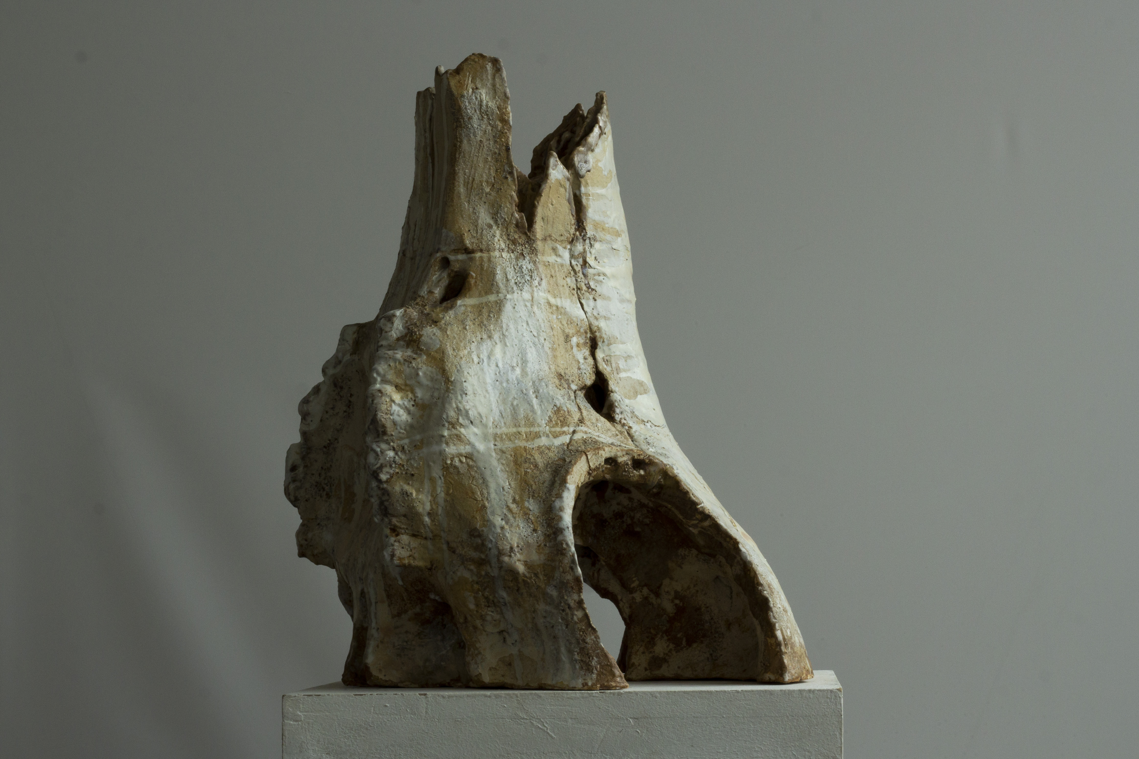 Cette série de céramique en grès, s’inspire de restes osseux , en émerge les troupeaux desquelles ils sont issus. Dents de bisons et mammouth, vertèbres de baleines. Une sorte de paléontologie fantastique ou toute une espèce serait contenue dans son plus petit vestige.