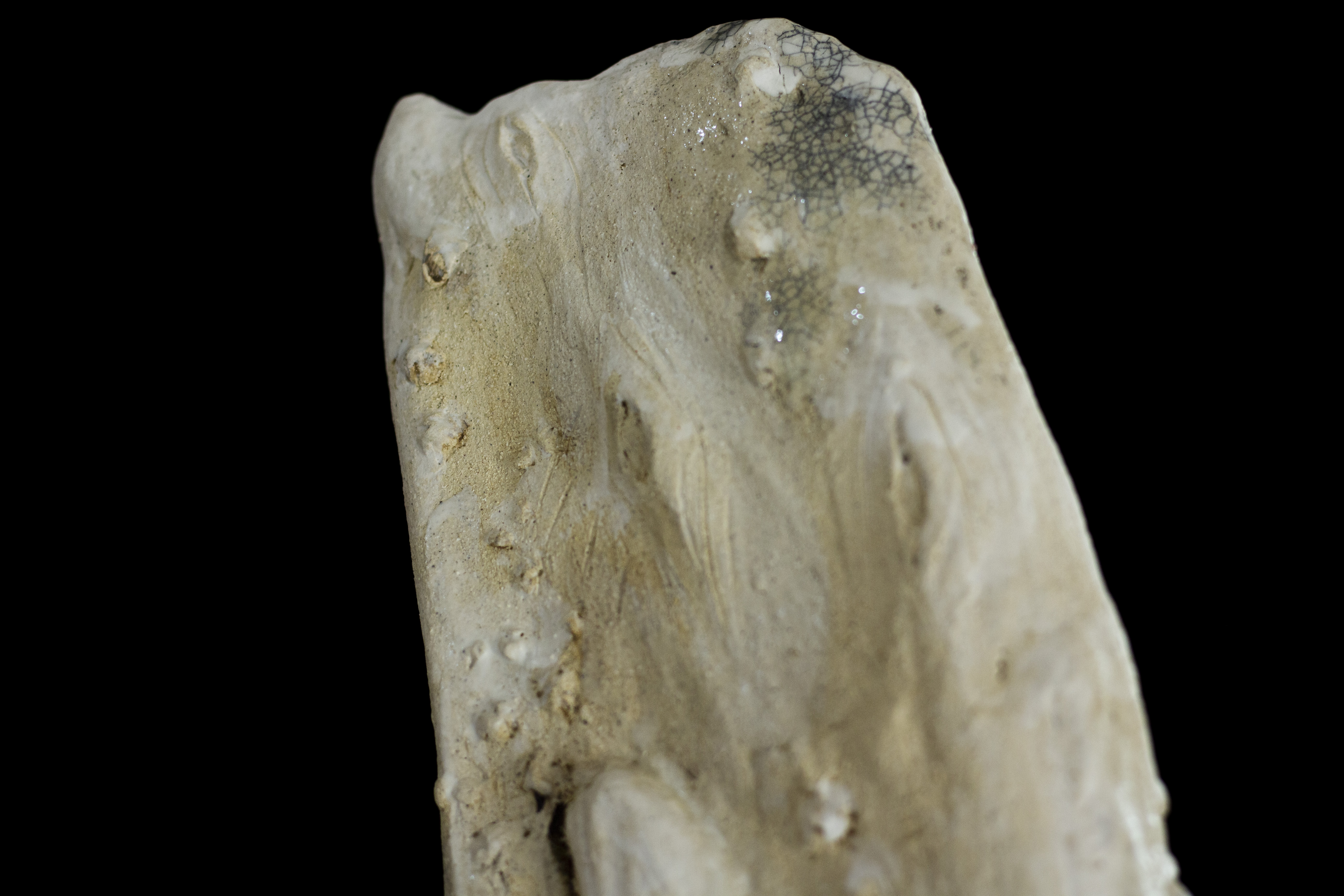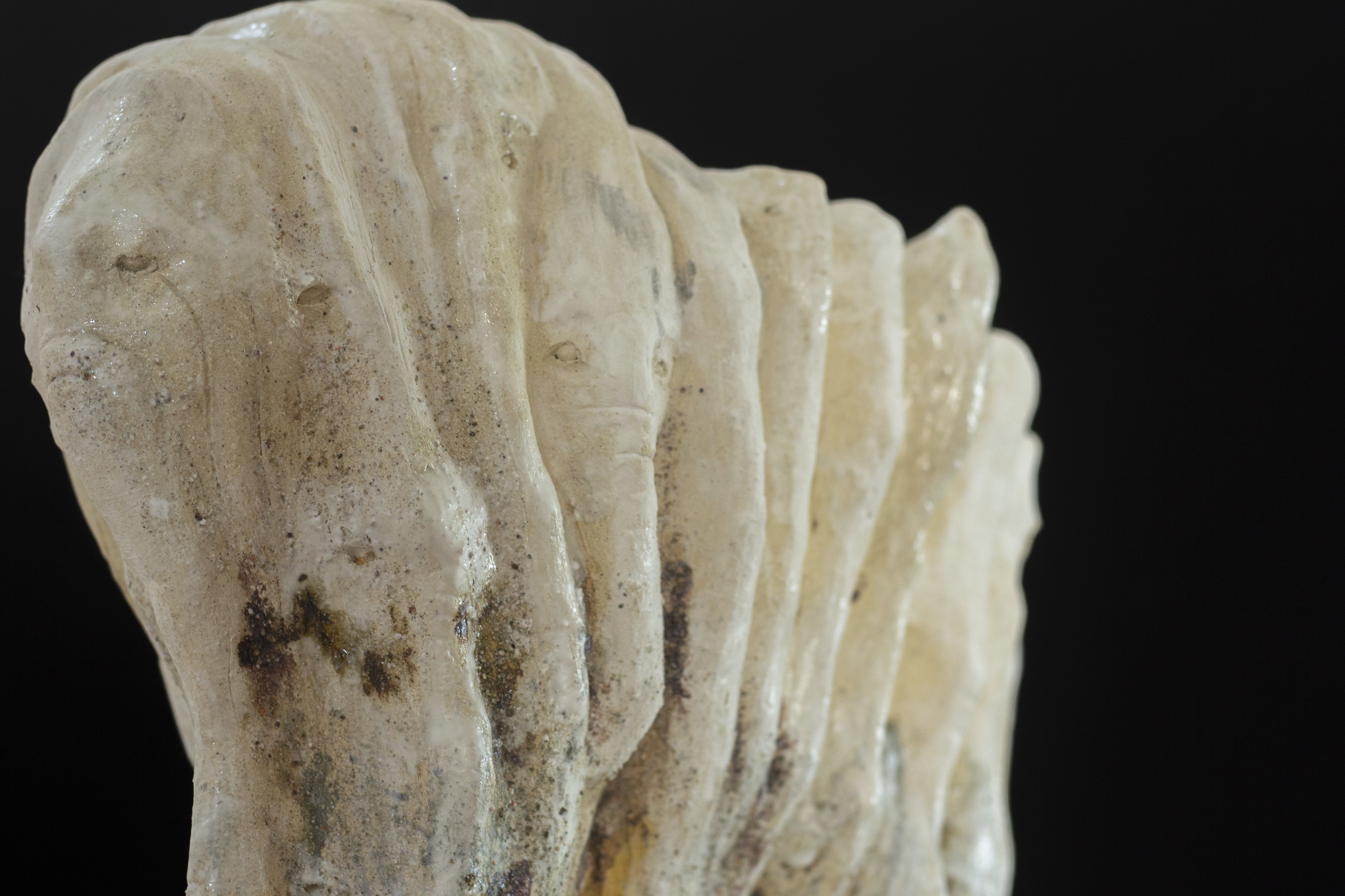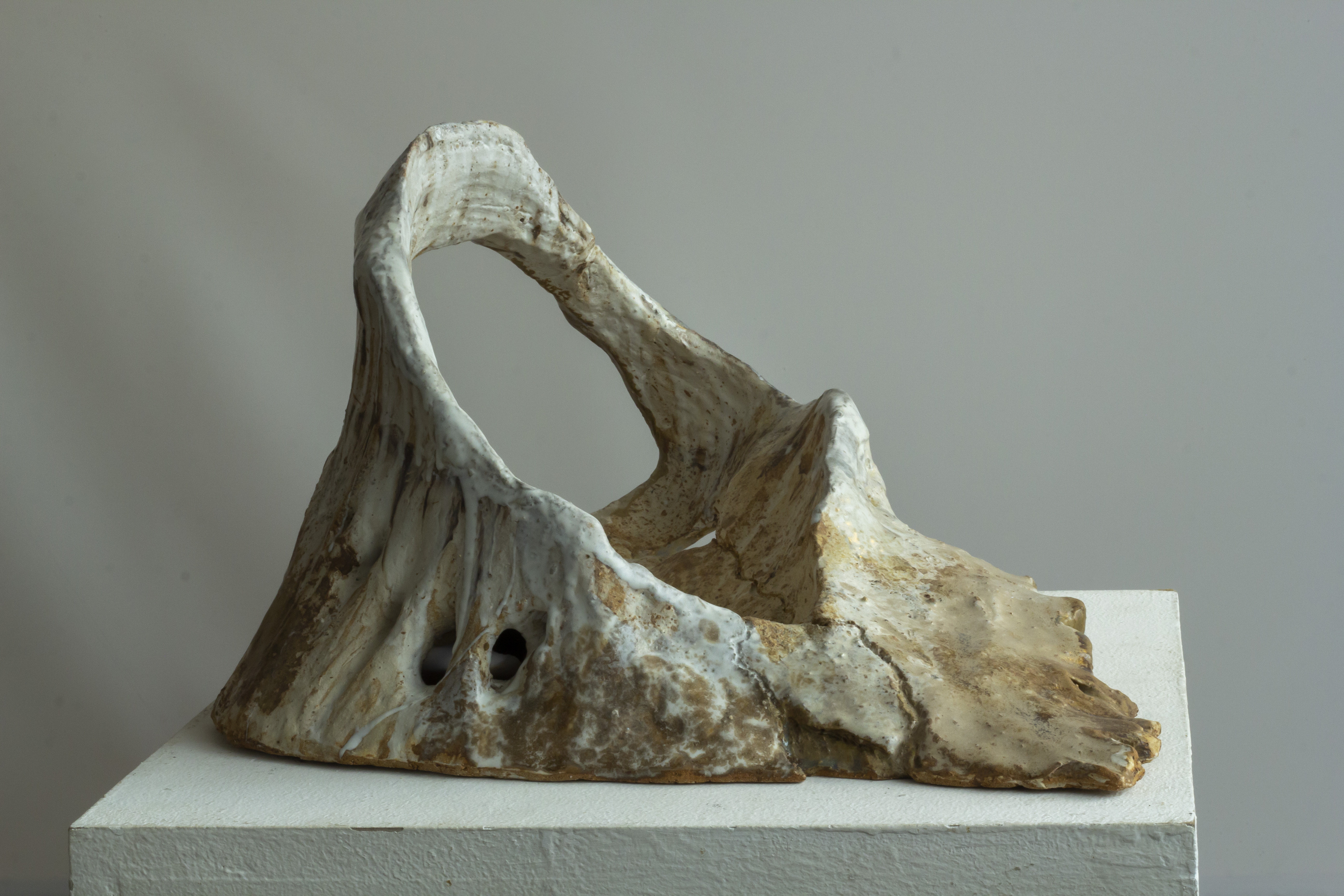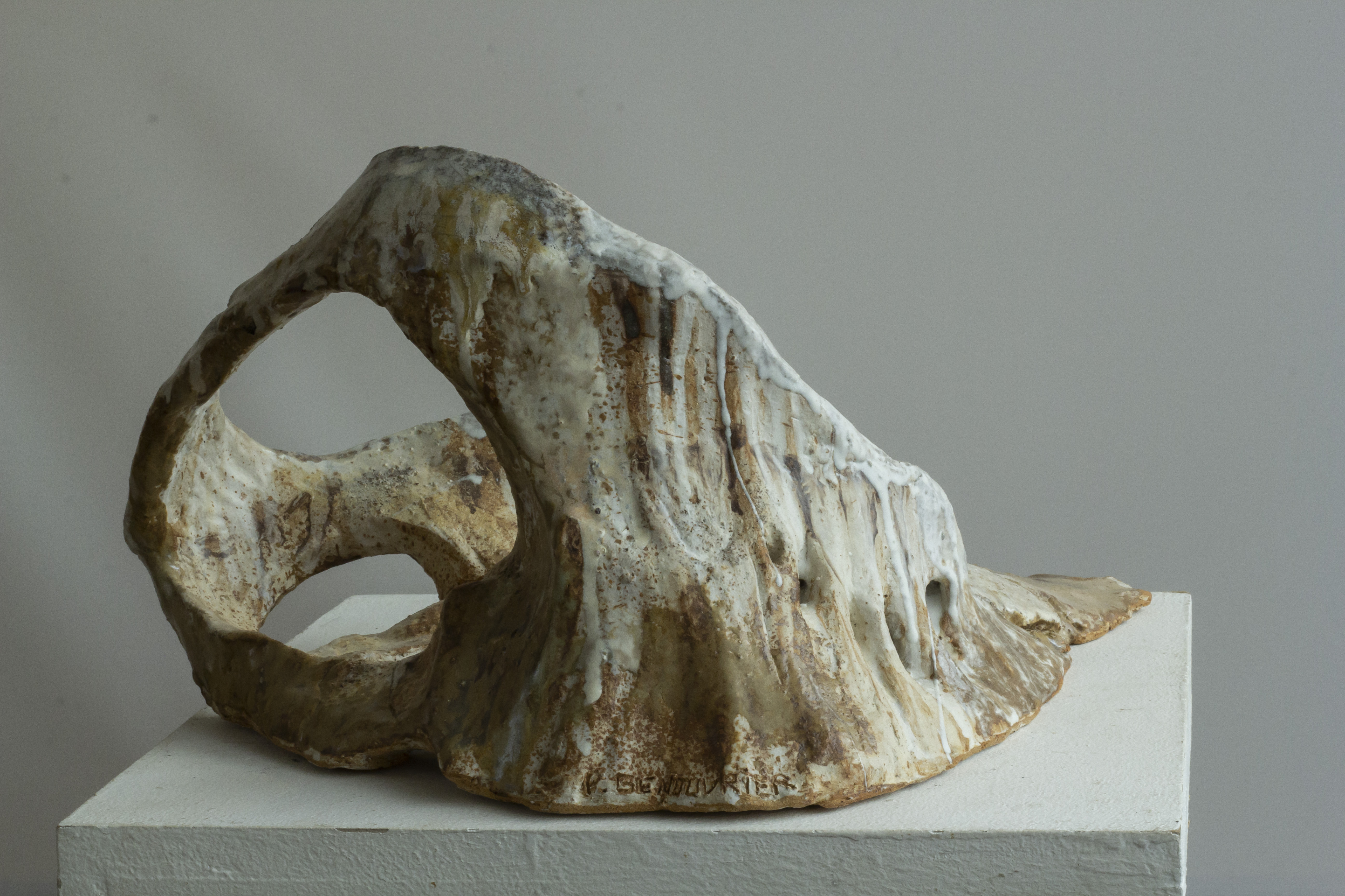 Cette série de céramique en grès, s’inspire de restes osseux , en émerge les troupeaux desquelles ils sont issus. Dents de bisons et mammouth, vertèbres de baleines. Une sorte de paléontologie fantastique ou toute une espèce serait contenue dans son plus petit vestige.